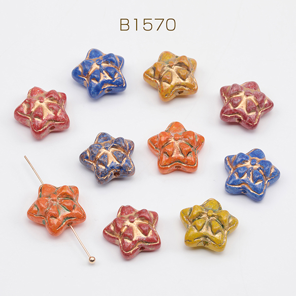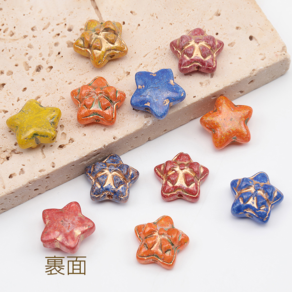 チェコ調ガラスビーズ リボン模様 星型 チェコガラス風 アンティーク風 カラーランダム 約14mm(10ヶ)