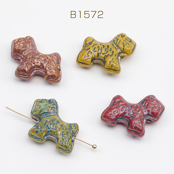 チェコ調ガラスビーズ こいぬ イヌ 犬 チェコガラス風 アンティーク風 カラーランダム 約17×18mm(4ヶ)