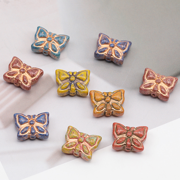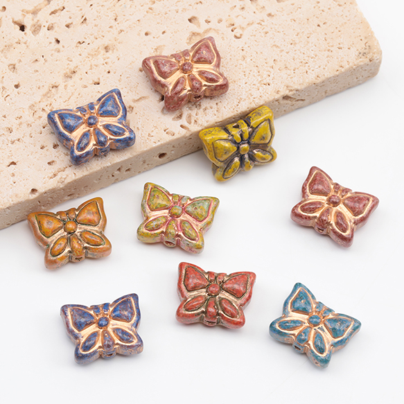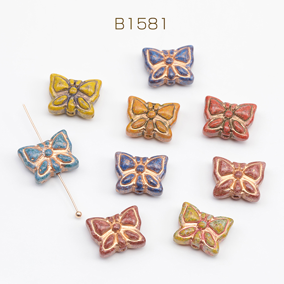 チェコ調ガラスビーズ ちょうちょ バタフライ 蝶々 チェコガラス風 アンティーク風 カラーランダム 約11×14mm(10ヶ)