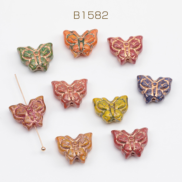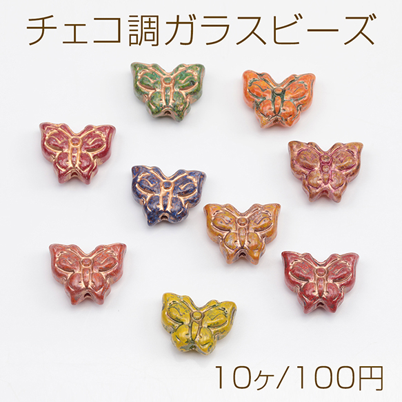 チェコ調ガラスビーズ ちょうちょ バタフライ 蝶々 チェコガラス風 アンティーク風 カラーランダム 約12×15mm(10ヶ)