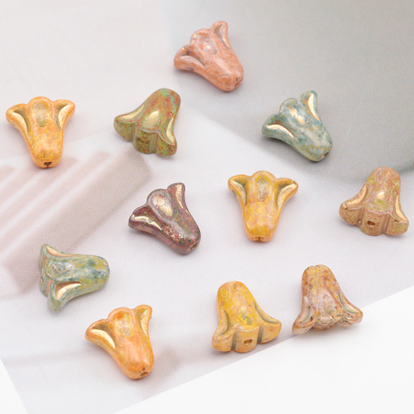 チェコ調ガラスビーズ お花 フラワー チェコガラス風 アンティーク風 カラーランダム 約10×11mm(15ヶ)
