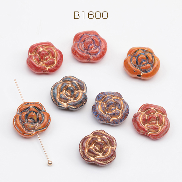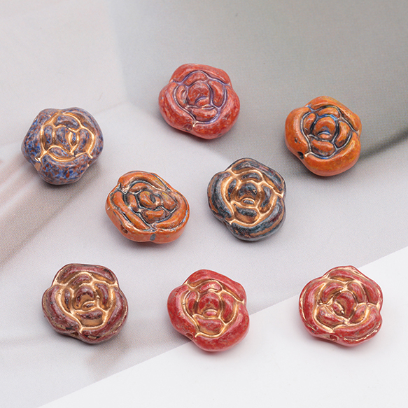 チェコ調ガラスビーズ バラ 薔薇 花形 フラワービーズ チェコガラス風 アンティーク風 カラーランダム 約13mm(10ヶ)