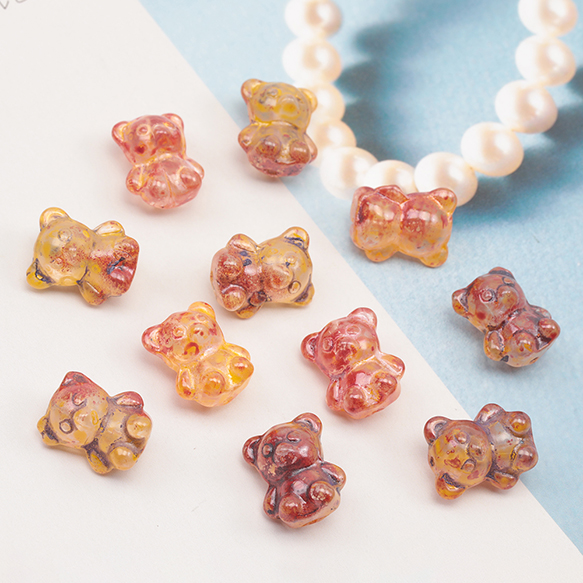 チェコ調ガラスビーズ くま クマ 子熊 テディベア チェコガラス風 アンティーク風 カラーランダム 約12×14mm(10ヶ)