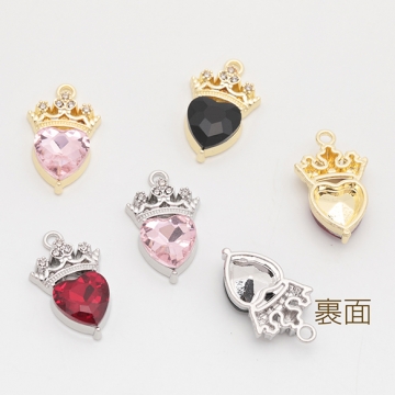 ハートチャーム 王冠 ラインストーン付き ガラスチャーム メタルチャーム 約14×23mm(2ヶ)
