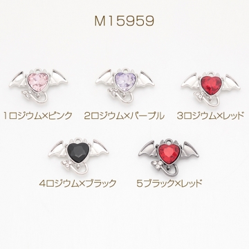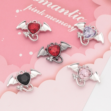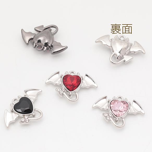ハートチャーム デビル風 ラインストーン付き 立体 ガラスチャーム メタルチャーム 約16×24mm(2ヶ)