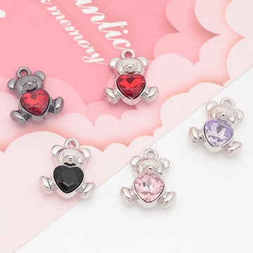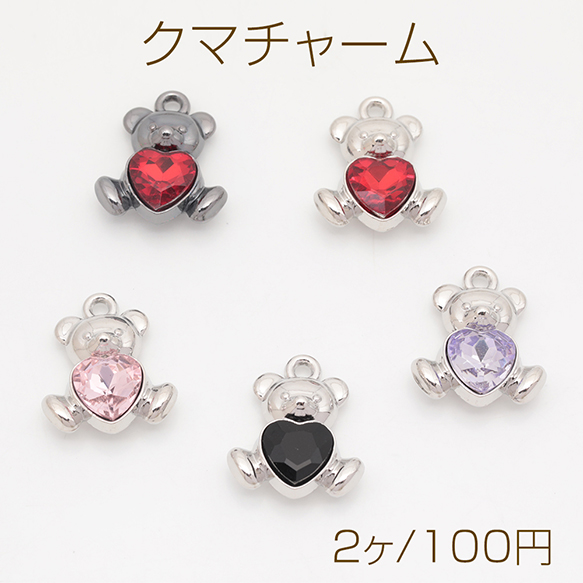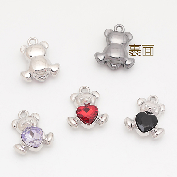 クマチャーム くま クマ 子熊 テディベア ストーン付き 立体 ガラスチャーム メタルチャーム 約16×19mm(2ヶ)