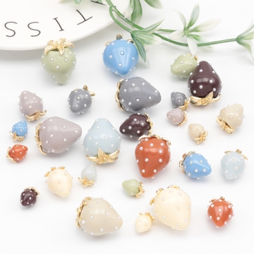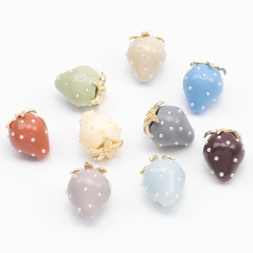 いちごチャーム 2026年トレンドカラー パール付き ストロベリー イチゴ 苺 アクリルチャーム 樹脂チャーム 約18×23mm(2ヶ)