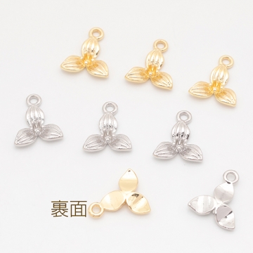 フラワーチャーム 三弁花 三つ葉 お花 立体 メタルチャーム 約12×14mm(6ヶ)
