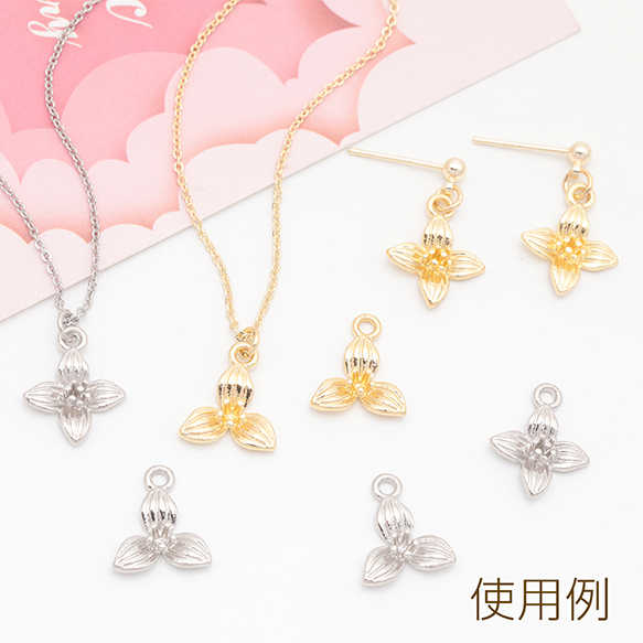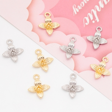 フラワーチャーム 四弁花 四つ葉 お花 立体 メタルチャーム 約13×15mm(6ヶ)