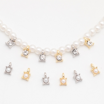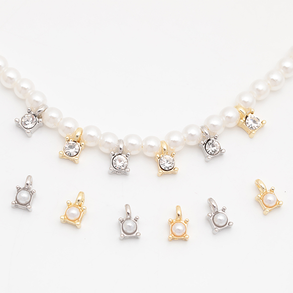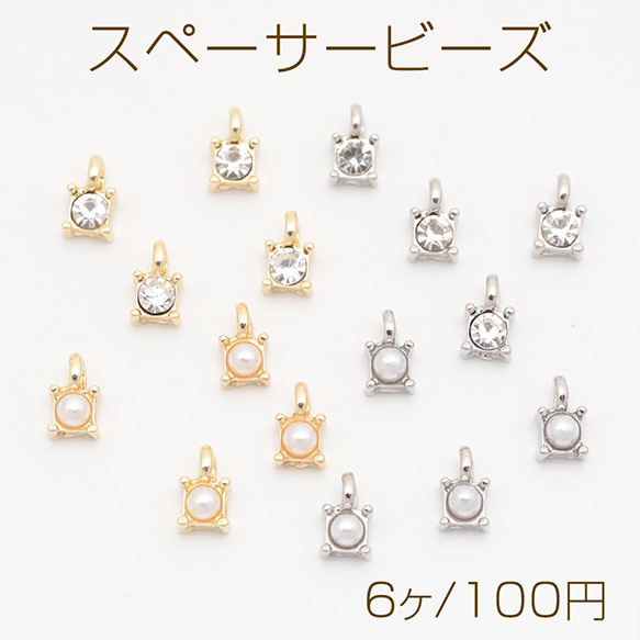 スペーサービーズ 一粒 ストーン/ABSパール付き メタルチャーム メタルビーズ 約4×6.5mm(6ヶ)
