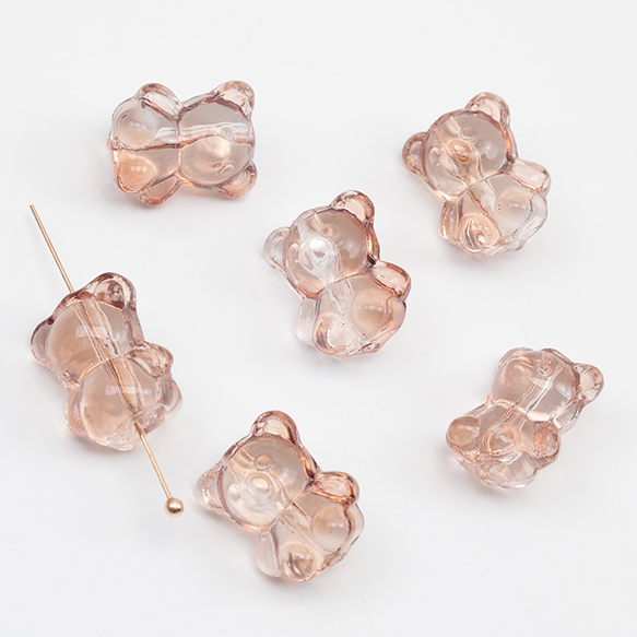 ガラスビーズ 立体 くま クマ 熊 テディベア クリアブラウン 透明 縦穴 クリアビーズ 約12×15mm(20ヶ)