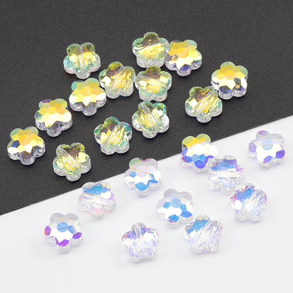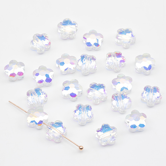 ガラスビーズ 梅の花 クリスタルカット ABカラー 電気メッキ加工 横穴 フラワービーズ 約8mm(20ヶ)