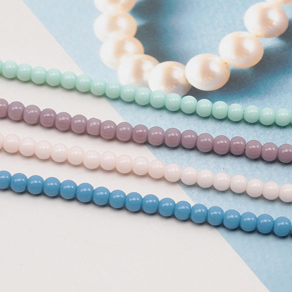 ガラスビーズ 無地 ラウンド シンプル 乳白色 ミルクカラー 丸形ビーズ 約3.5mm(1連(約115ヶ))
