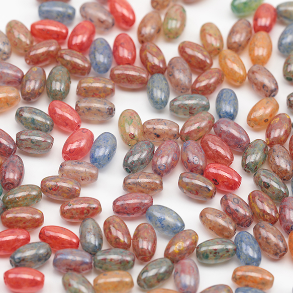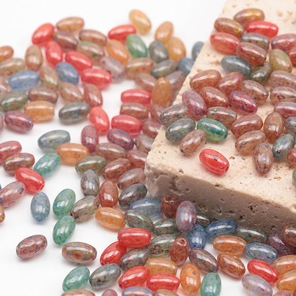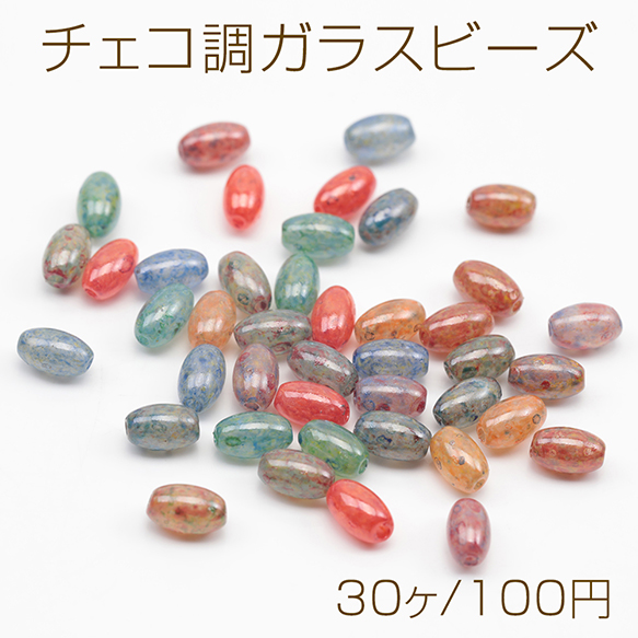 チェコ調ガラスビーズ ミニ オーバル 楕円形 チェコガラス風 アンティーク風 カラーランダム 約3×6mm(30ヶ)
