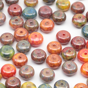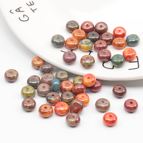 チェコ調ガラスビーズ そろばん型 チェコガラス風 アンティーク風 カラーランダム 約5×8mm(15ヶ)