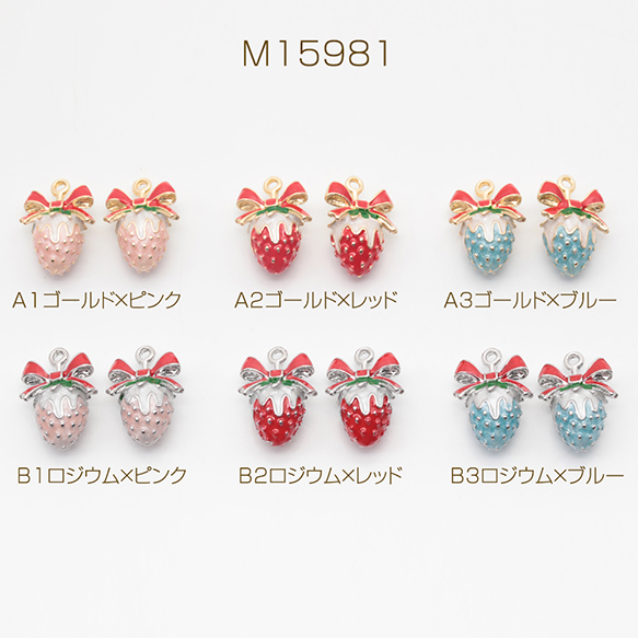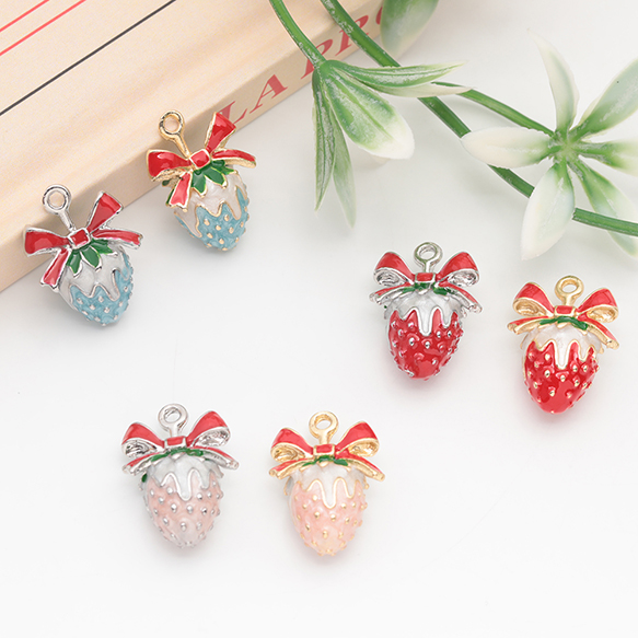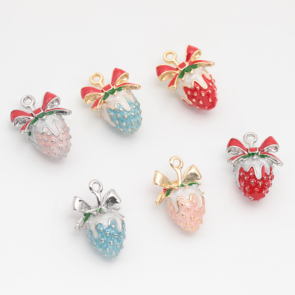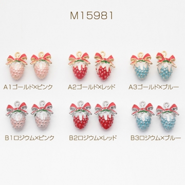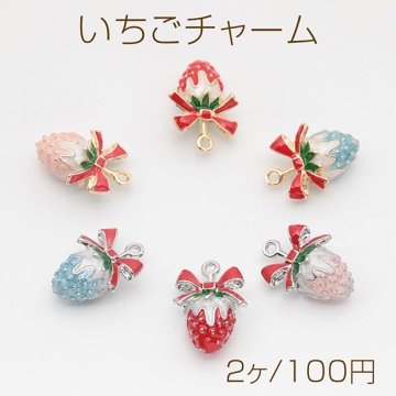 いちごチャーム リボン付き エポチャーム ストロベリー イチゴ 苺 フルーツチャーム 樹脂チャーム 約13×18mm(2ヶ)