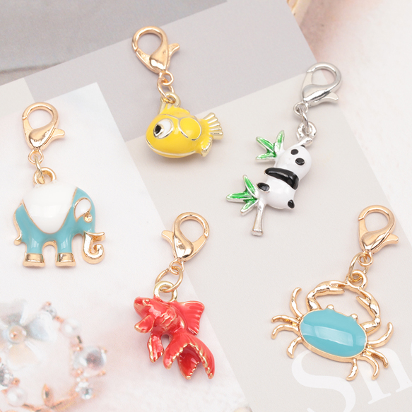カニカン付きチャーム 海の生き物 恐竜 パンダ キリン アニマル 動物チャーム マスクチャーム ストラップチャーム(1ヶ)