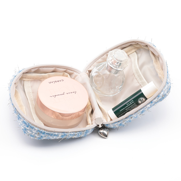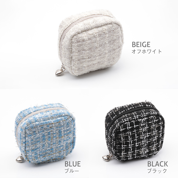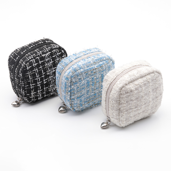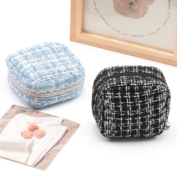 コスメポーチ スクエア 小型 ツイード生地 化粧ポーチ コスメバッグ ミニポーチ 小物入れ 約5×10×10cm(1ヶ)