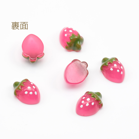 いちご貼付けパーツ イチゴ 苺 フルーツ カボション デコパーツ 樹脂貼付けパーツ 貼り付けパーツ 約8×11mm(6ヶ)