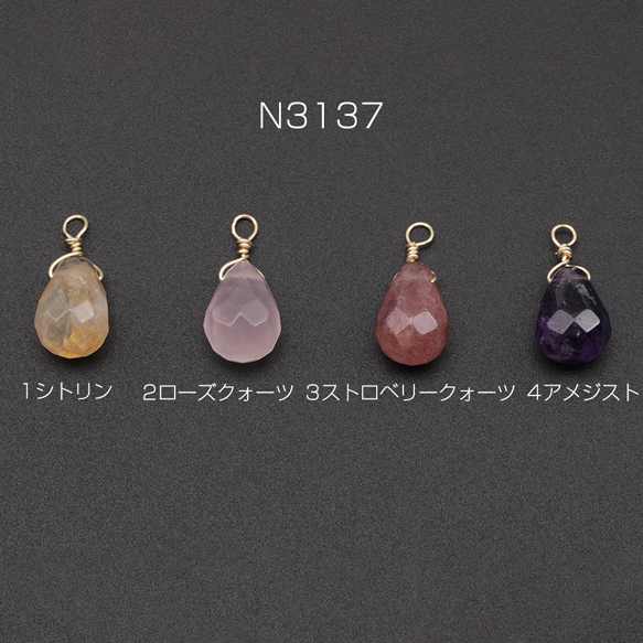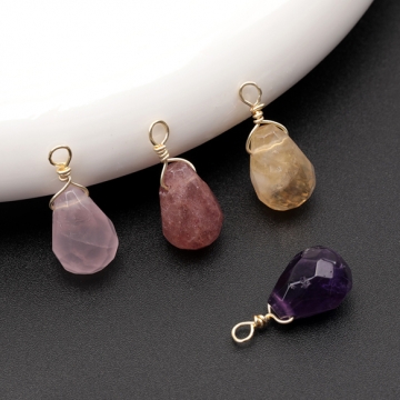 天然石チャーム 多面カット しずく形 雫 カン付き アクセサリー制作におすすめ 約10×14mm(1ヶ)