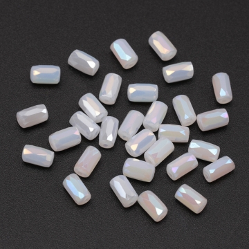 ガラスビーズ 円柱型 多面カット キラキラ シンプル 乳白色 筒状 シリンダービーズ 約4×6mm(1連(約75ヶ))