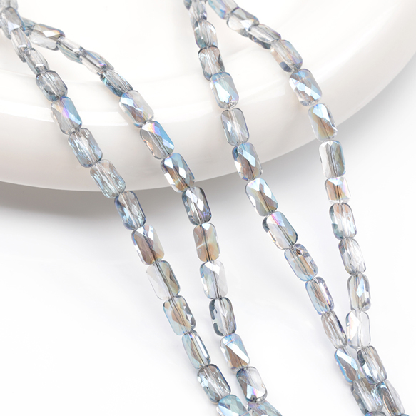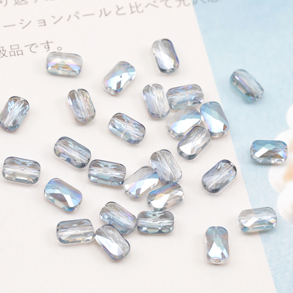ガラスビーズ フラット 長方形 多面カット キラキラ シンプル クリア 約4×7mm(1連(約75ヶ))