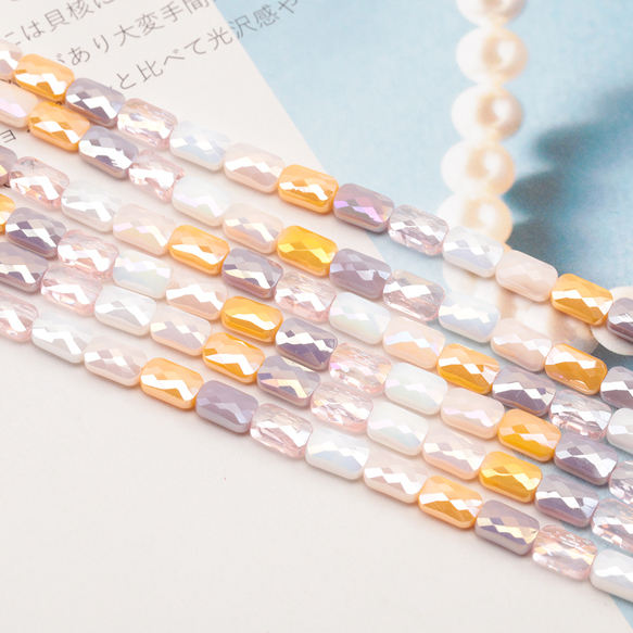 ガラスビーズ 長方形 多面カット キラキラ 全3色 約4×7mm(1連(約60ヶ))