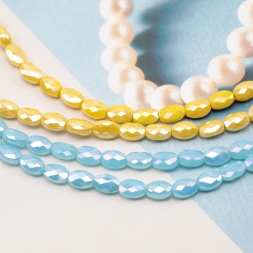 ガラスビーズ オーバル 多面カット キラキラ 約4×6mm(1連(約75ヶ))