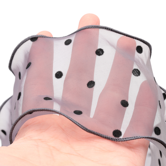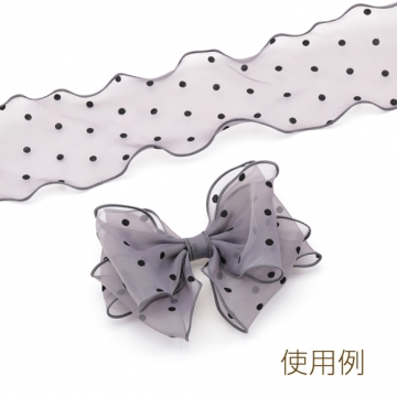 リボン フロック加工 水玉模様 ウェーブエッジリボン ヘアアクセサリー 幅約8cm (長さ約1m)