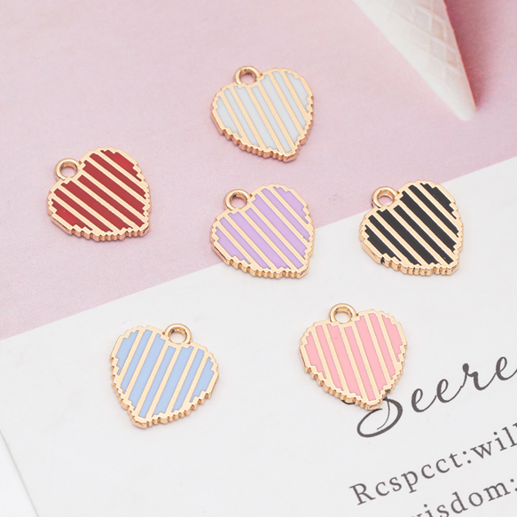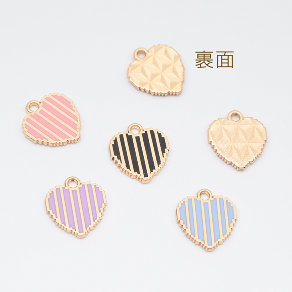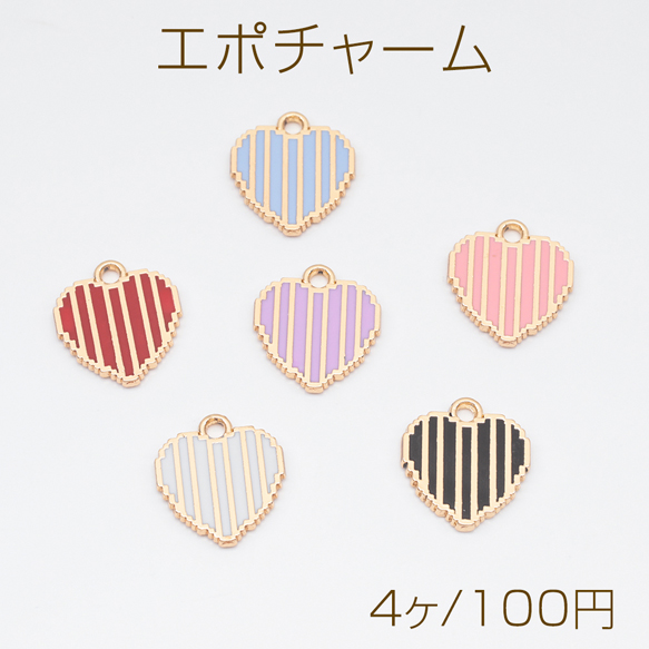 エポチャーム ストライプ柄 ドット風ハート かわいい カン付き メタルチャーム 約13×14mm(4ヶ)