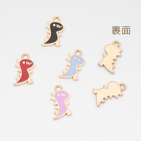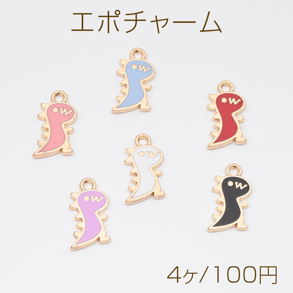 エポチャーム キュート 可愛い 恐竜 ティラノサウルス 生き物チャーム メタルチャーム 約8×15mm(4ヶ)
