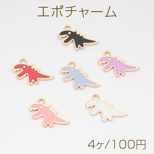 エポチャーム 恐竜 ティラノサウルス 生き物チャーム メタルチャーム 約14×20mm(4ヶ)