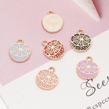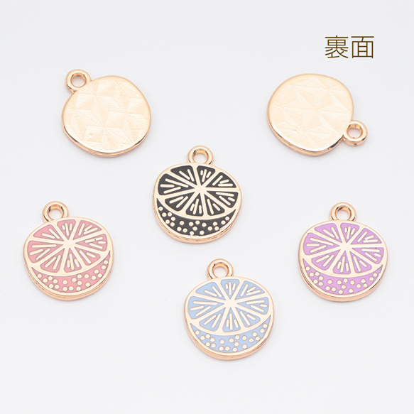 エポチャーム オレンジ 果物 フルーツ プレートチャーム メタルチャーム 約12×14mm(4ヶ)