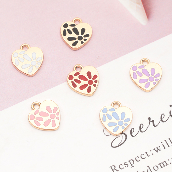 エポチャーム ハート 花模様 プレートチャーム メタルチャーム 約11×12mm(4ヶ)