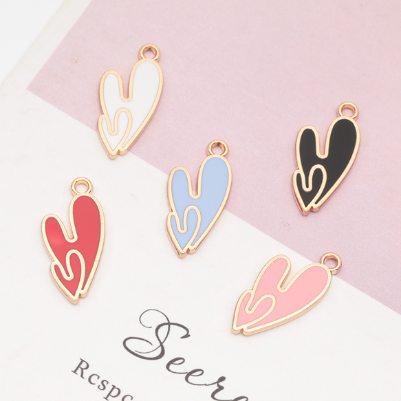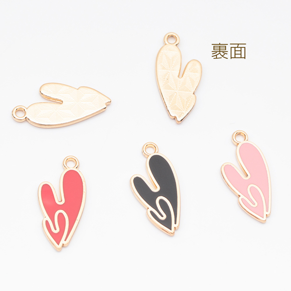 エポチャーム ハート ダブル ユニーク プレートチャーム メタルチャーム 約10×21mm(4ヶ)