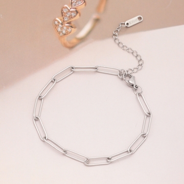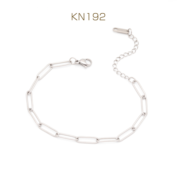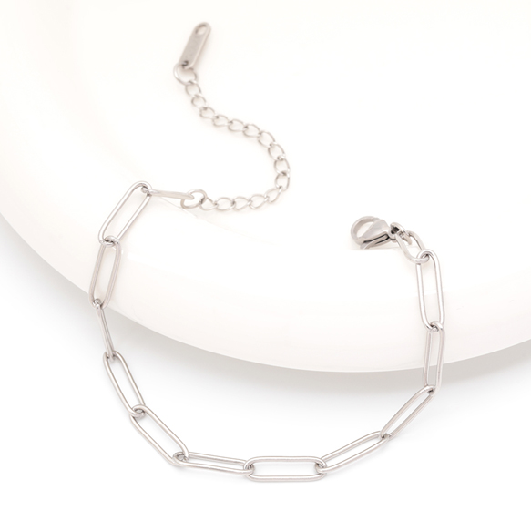 ステンレスブレスレット 角丸ロングオーバル デザインチェーン シルバーカラー 長さ約18+6cm(幅約4.5mm)(1本)