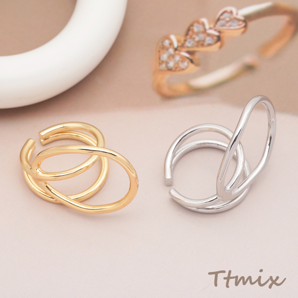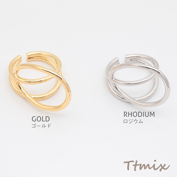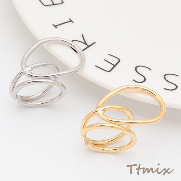 デザインリング 幾何学 指輪 メタル オープンリング 13号内径約17mm(幅約20mm)(1ヶ)