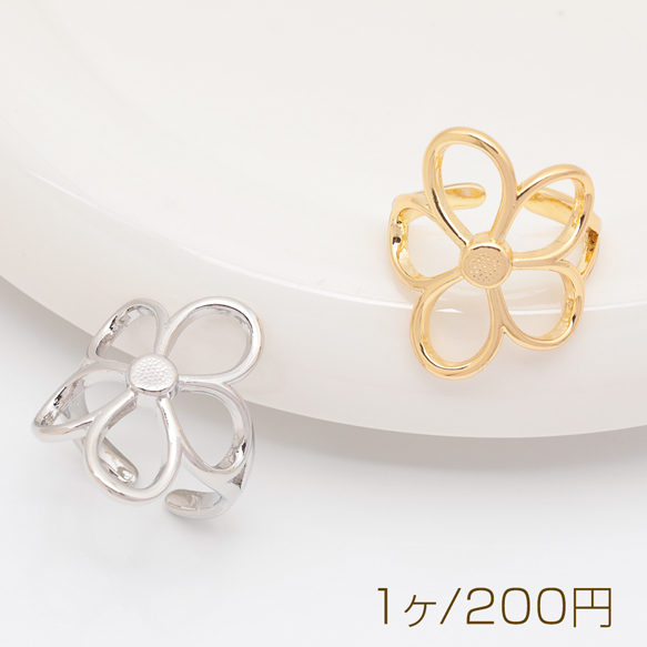 デザインリング 透かしフラワー 指輪 メタル オープンリング 15号内径約17.7mm(幅約26mm)(1ヶ)