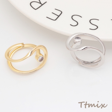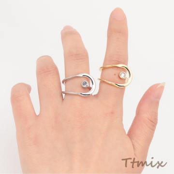 デザインリング U字 ジルコニア付き 指輪 メタル オープンリング 13号内径約17mm(幅約17mm)(1ヶ)