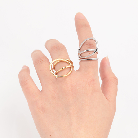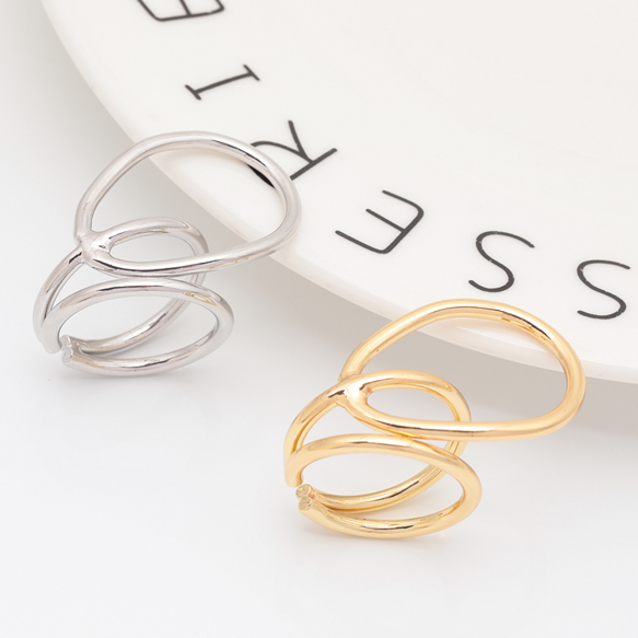卸売デザインリング 幾何学 指輪 メタル オープンリング 13号内径約17mm(幅約20mm)(1ヶ)