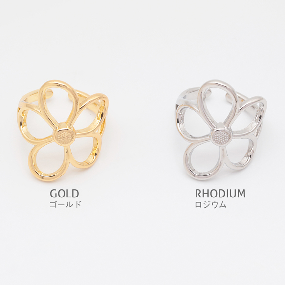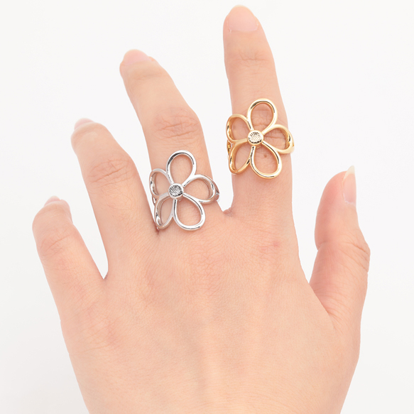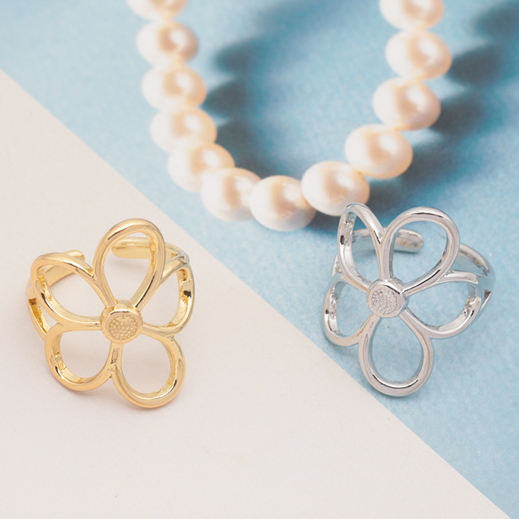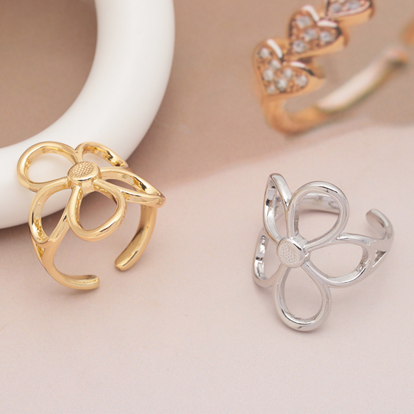 卸売デザインリング 透かしフラワー 指輪 メタル オープンリング 15号内径約17.7mm(幅約26mm)(1ヶ)