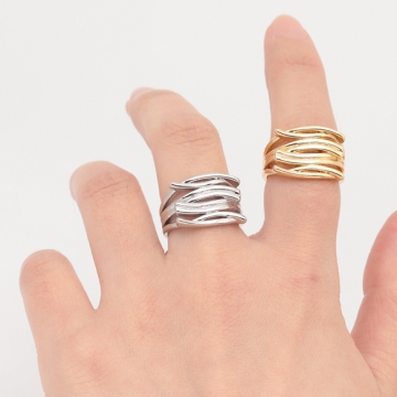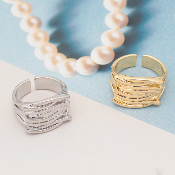 卸売デザインリング 多層風 指輪 メタル オープンリング 13号内径約17mm(幅約14mm)(1ヶ)