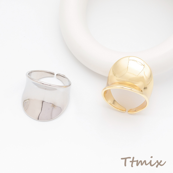 ファッションリング 指輪 ワイドリング 幅広リング カーブリング サイズ調整可 内径約17.7mm(幅約21mm)(1個)