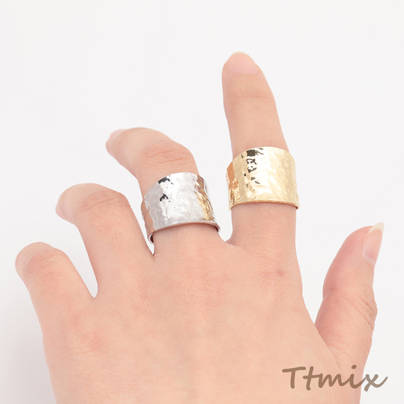 ファッションリング 指輪 ワイドリング 幅広リング カーブリング サイズ調整可 内径約18mm(幅約18mm)(1個)
