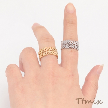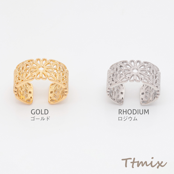 ファッションリング 指輪 透かし調リング オープンリング レディース用 サイズ調整可 内径約17.4mm(幅約9mm)(1個)