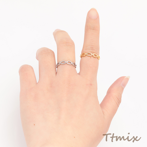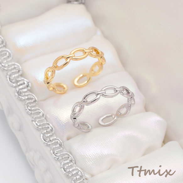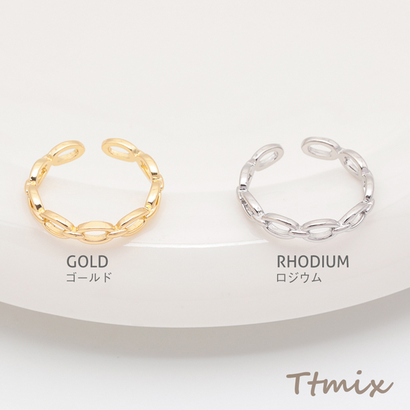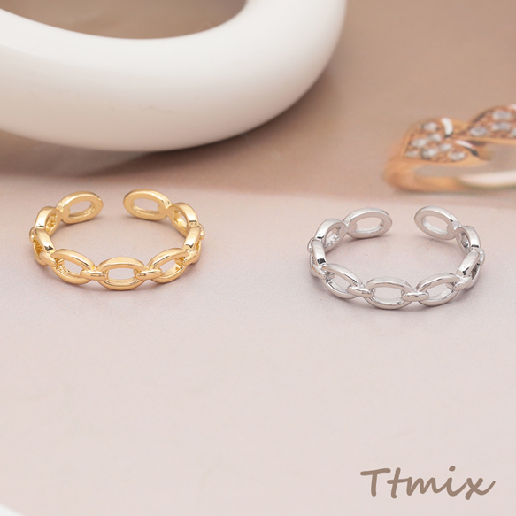 ファッションリング チェーンリング 重ね付け 指輪 オープンリング サイズ調整可 内径約16.7mm(幅約4mm)(1個)