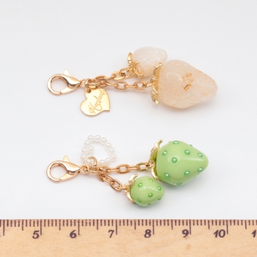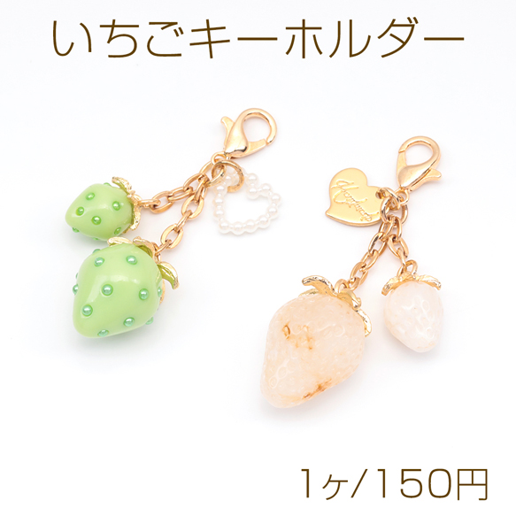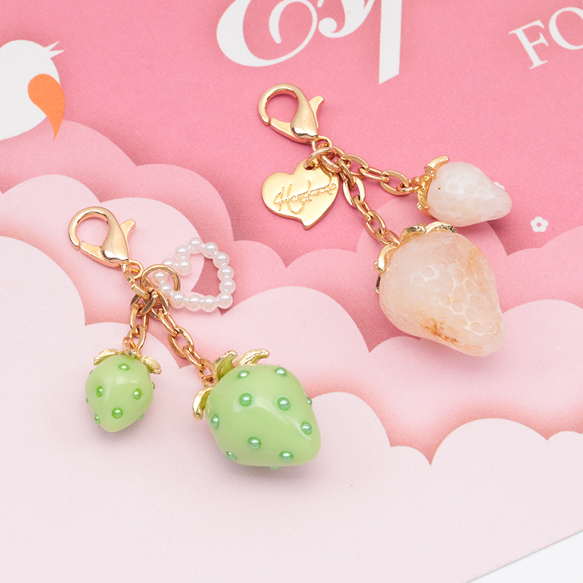 いちごキーホルダー ミニ苺とハートチャーム付き 苺ストラップ イチゴバッグチャーム 鍵とパスケースに付けても可愛い(1個)
