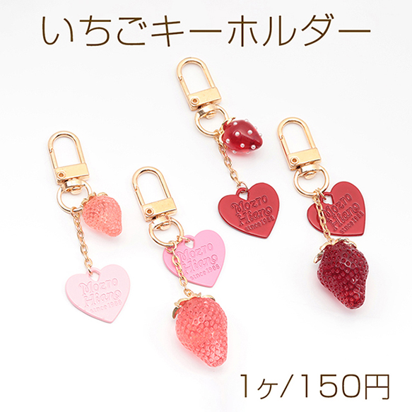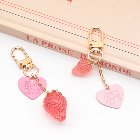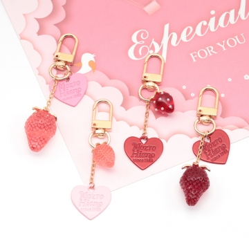 いちごキーホルダー ハートチャーム付き 苺ストラップ イチゴバッグチャーム 鍵とパスケースに付けても可愛い(1個)