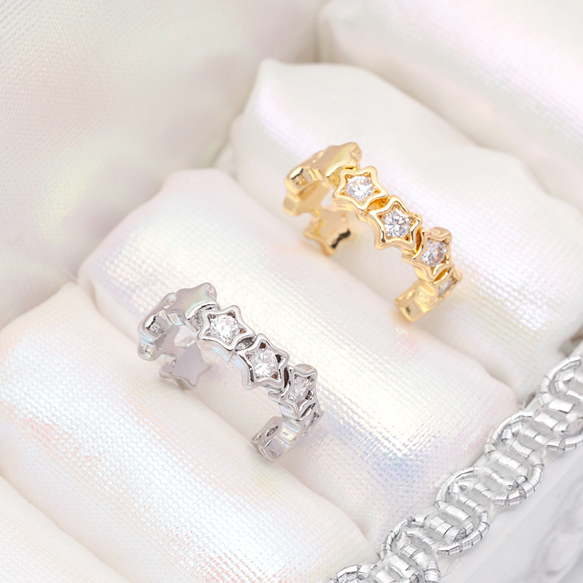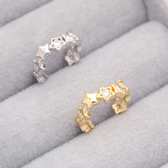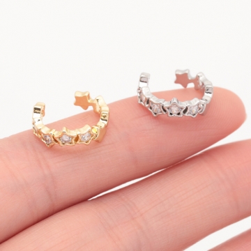 卸売イヤーカフ スター 星形 ジルコニア付き ピアスホール不要 片耳 両耳 耳飾り メタルイヤーカフ 約4×14mm(1ヶ)