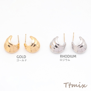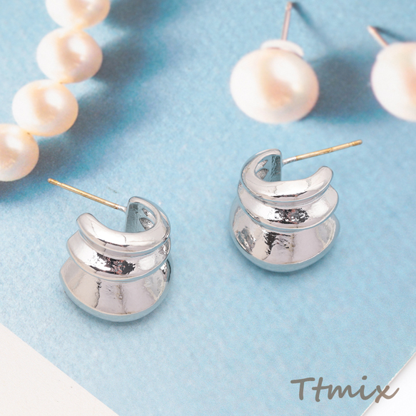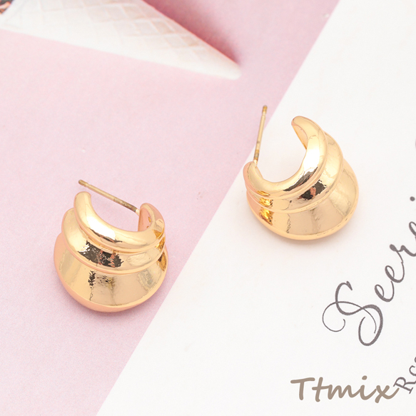デザインピアス 3層C字 太め スタッドピアス メタルピアス 約14×15mm(1ペア)